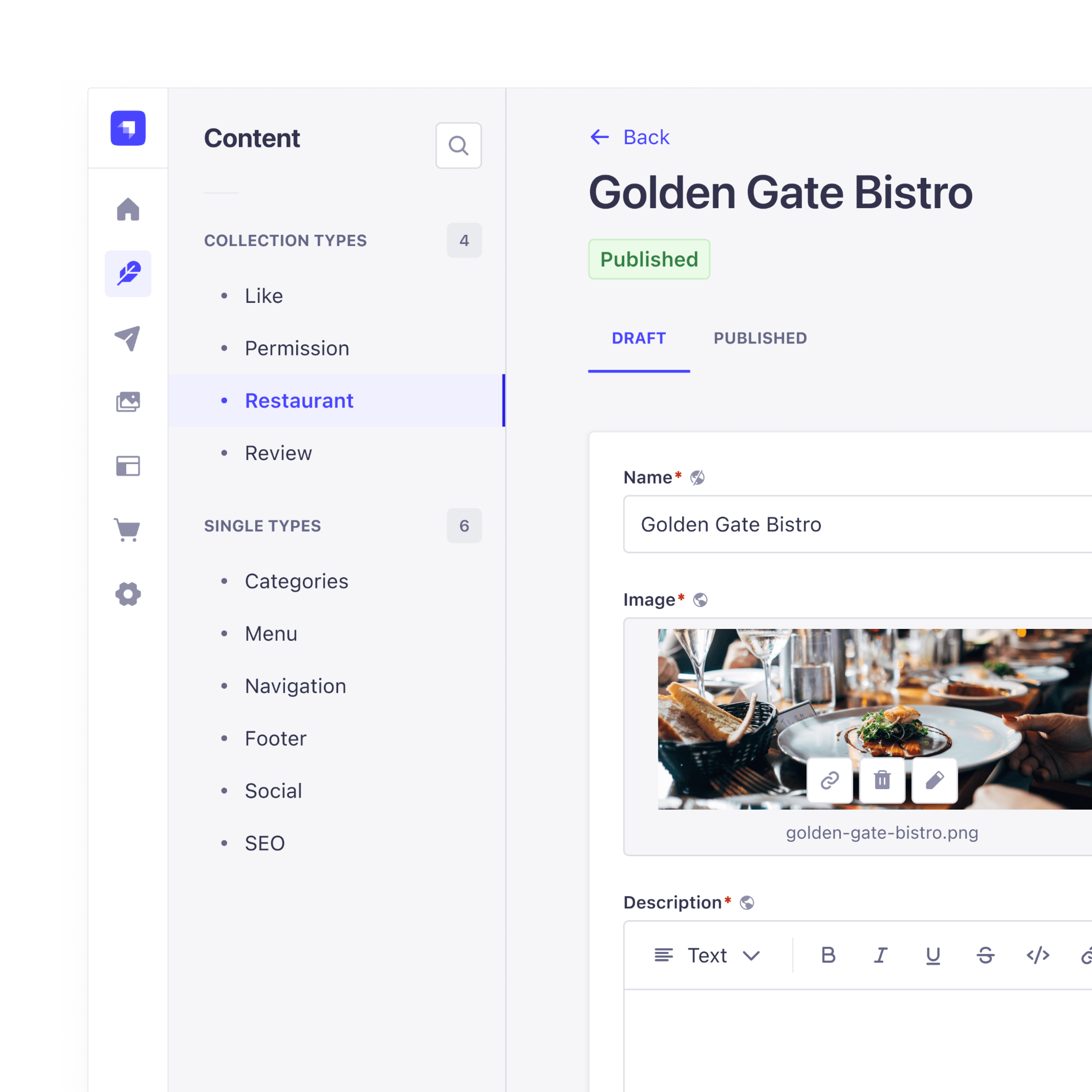 Tailor your CMS to unique project needs with a powerful Content-Type Builder, dynamic zones, and custom fields. Extend functionality using plugins from a thriving marketplace or design your own with the comprehensive design system. -